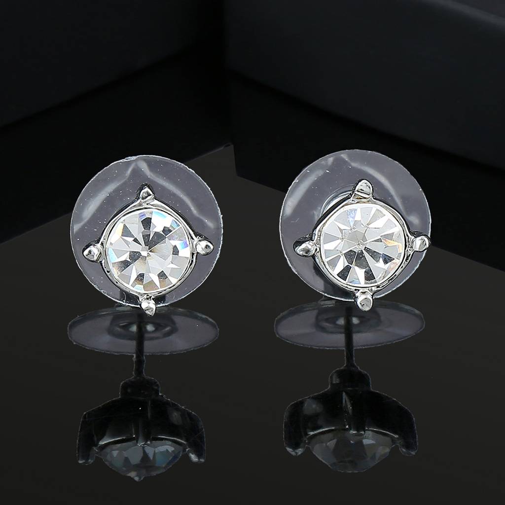 Estele Rhodium Plated Solitaire Stud Earrings For Women : 9666-ERER