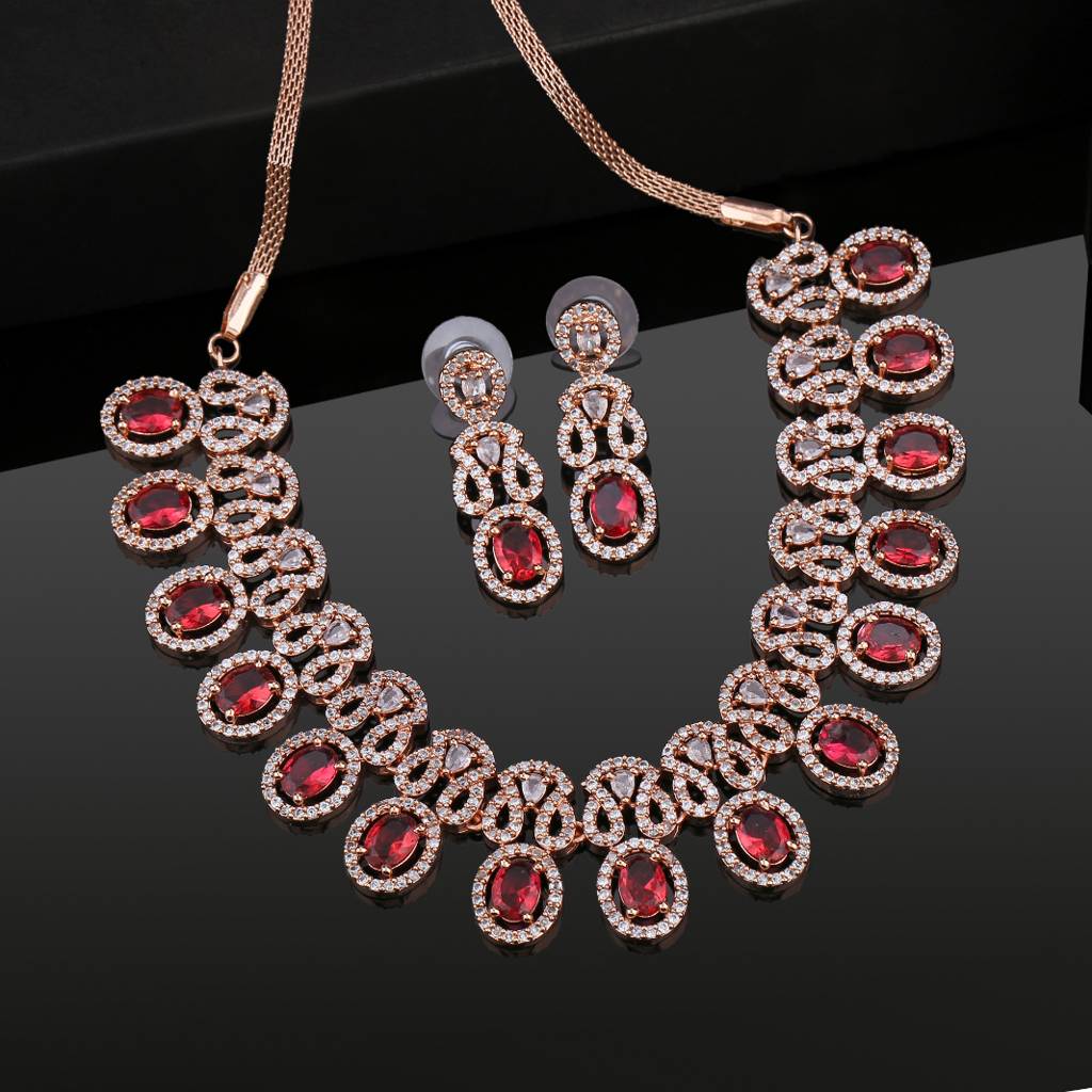 Estele Rose Gold Plated Dazzling Necklace Set With Ruby Stones For Women