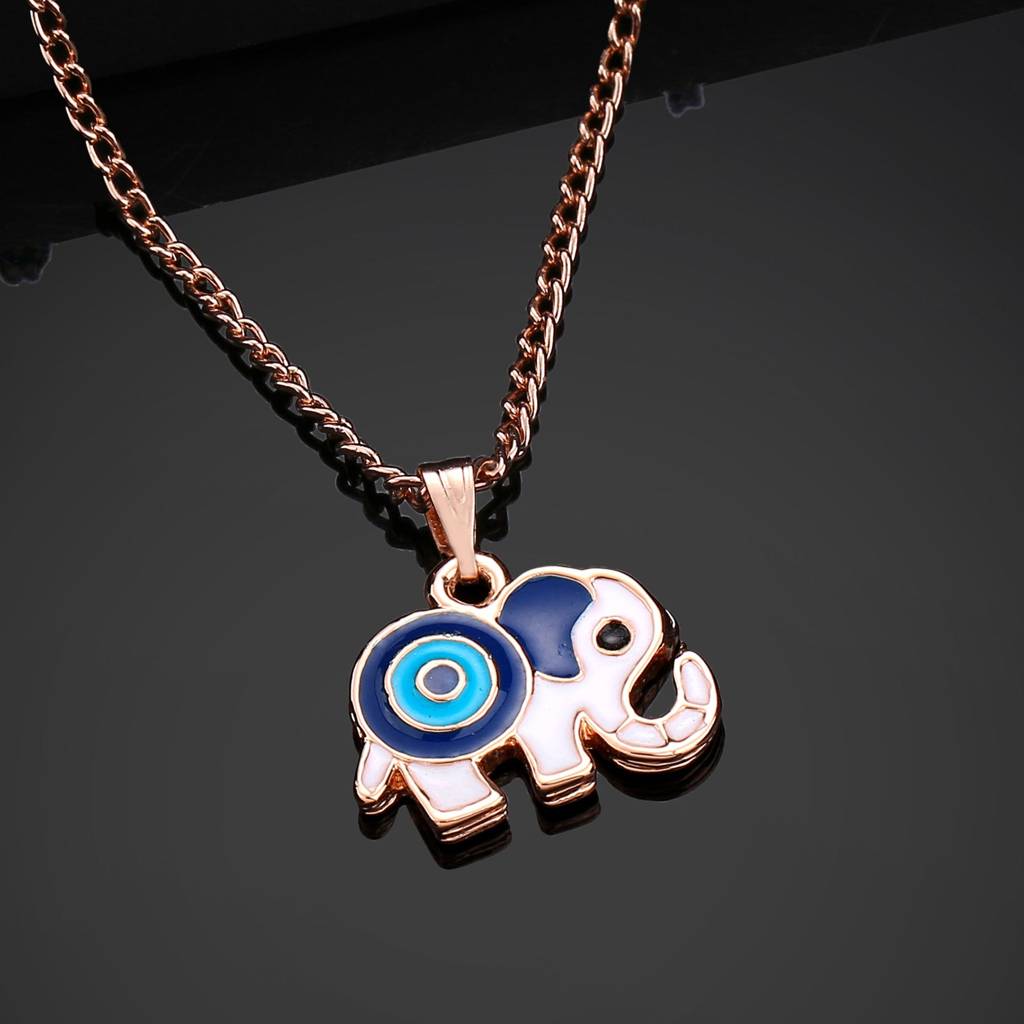 Estele Rose Gold Plated Gorgeous Elephant Designer Evil Eye Charm Pendant With Navy Blue & Turquoise Blu : 1011-RG-NBTQPENDANT