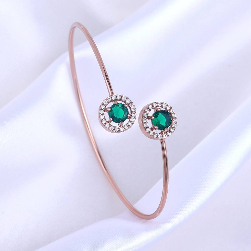 Estele Rosegold Plated Elegant And Lightweight Cuff Kada Bracelet With Stunning Green Stones For Girls & Women : AD-090-RGGNBR