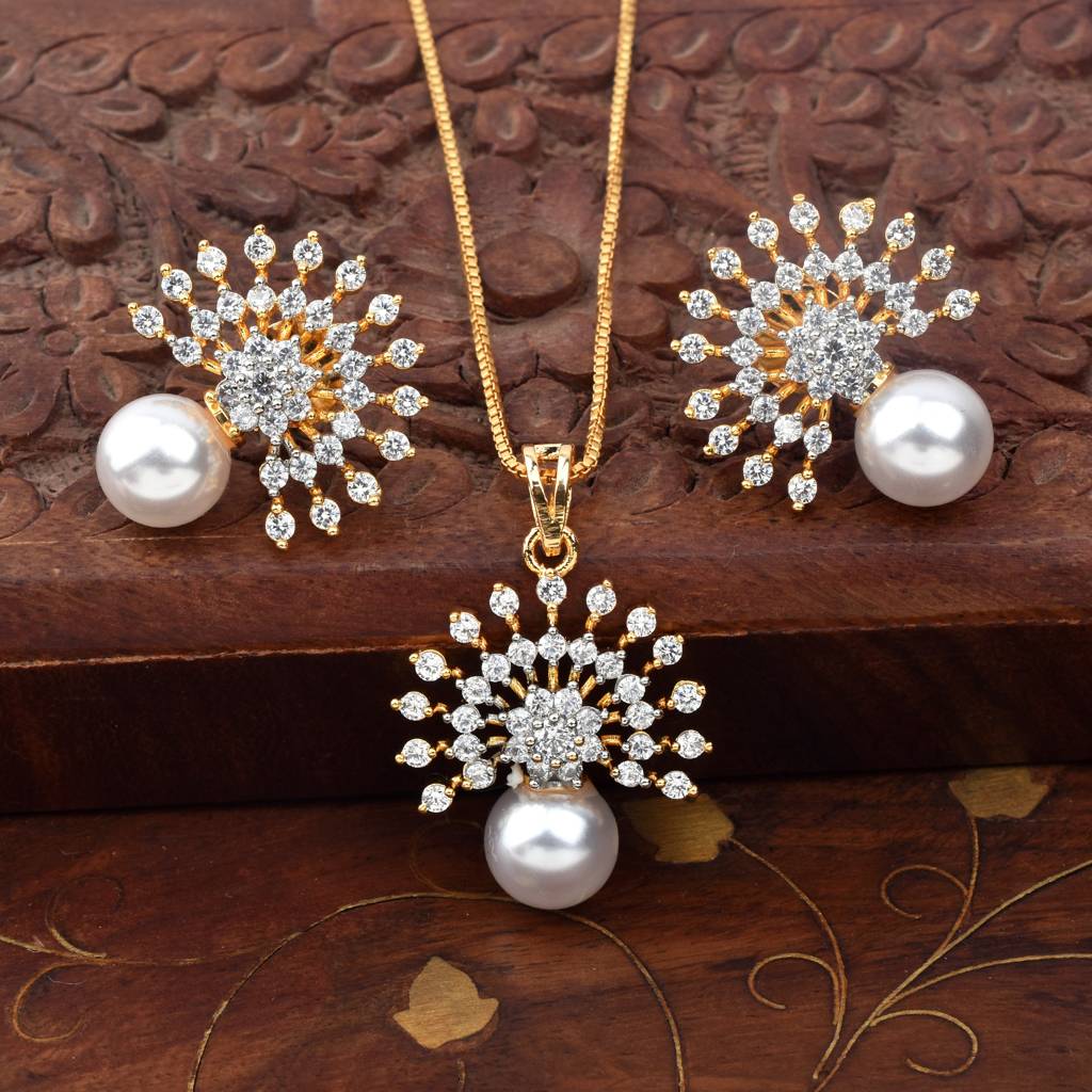 Eternal Pearl Pendant Set With Chain And Earrings : PJPENGPCZ32