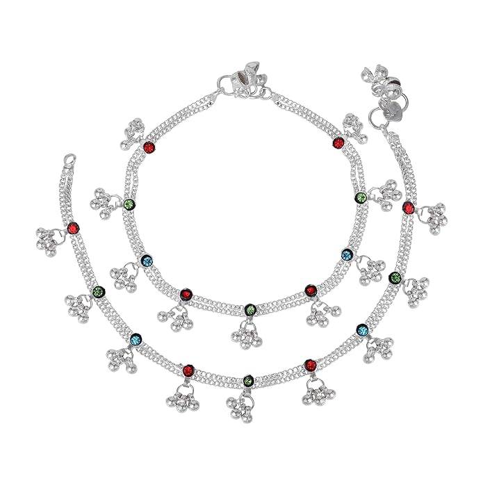 EsteleFashion Jewelry Anklets For Women: Rhodium Plated Cheerful Charms: Playful And Colorful Crystals Enhanced Lightweight Anklets For Girls & Women-Osak003-Irmc Anklet