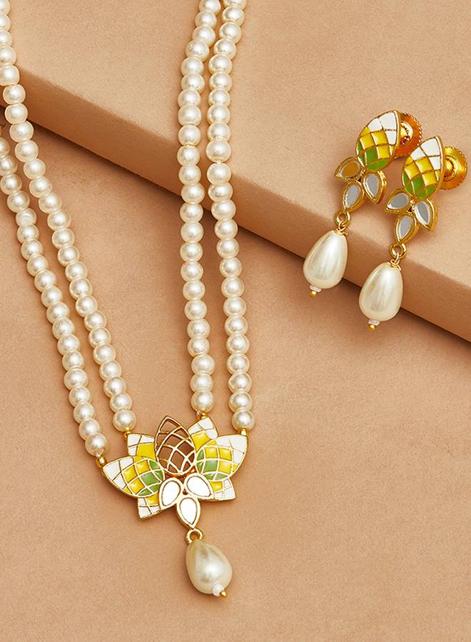 Festove Hues White Pearls Gold Plated Jewellery Set : 8905124458848