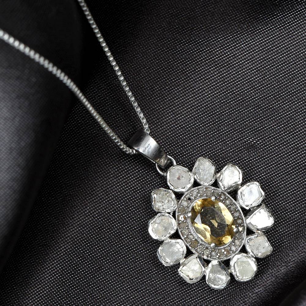 Exotic IndiaFloral Design Sterling Silver Pendant With Citrine Gemstone (One Size)