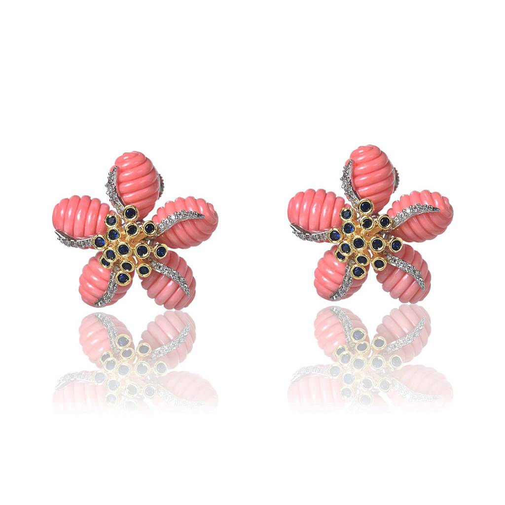 Advitya by ShreyaFlower Coral And Blue Tops Earrings (Size 3.5)