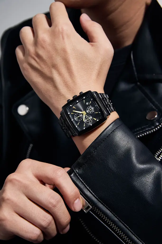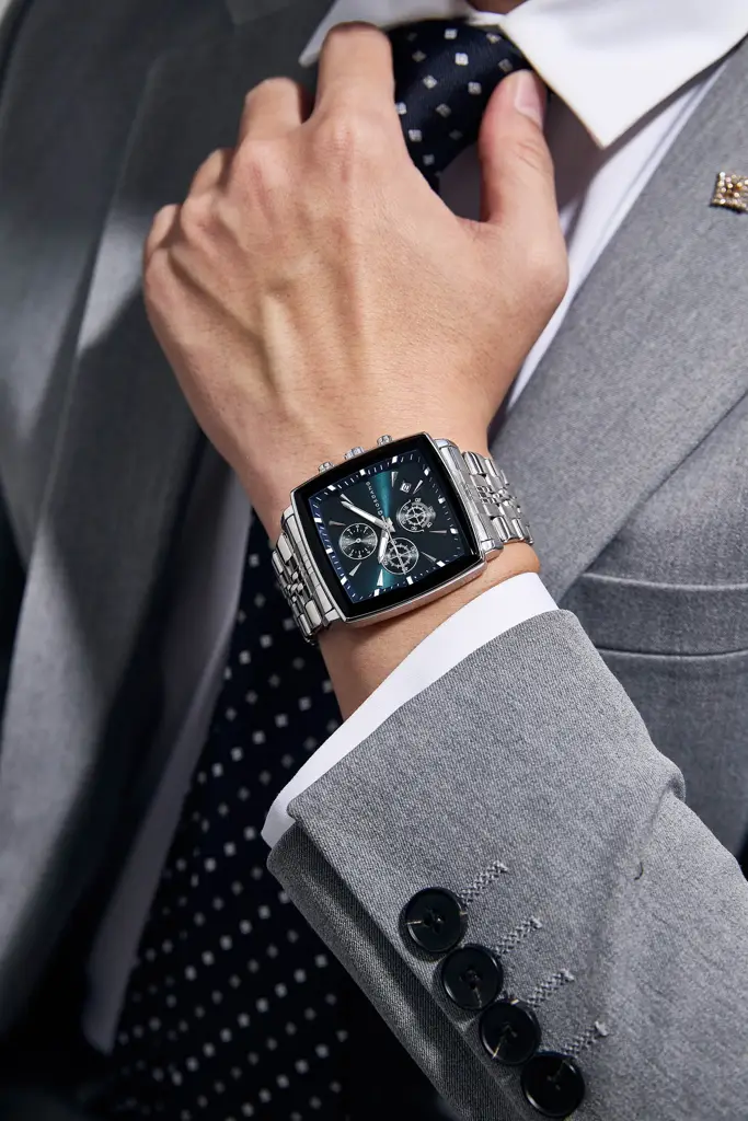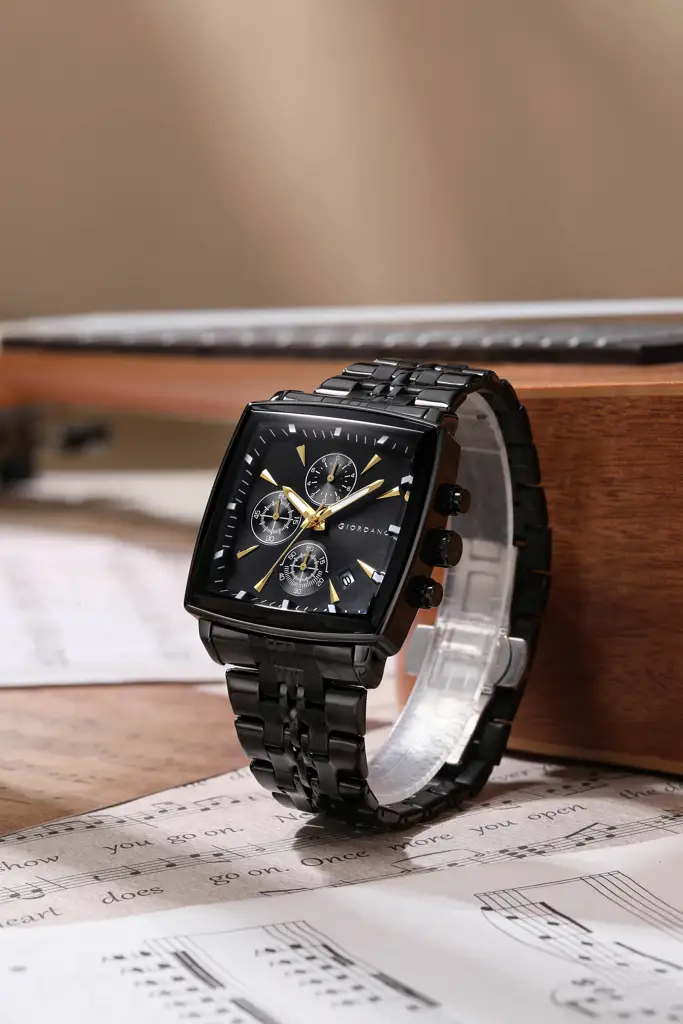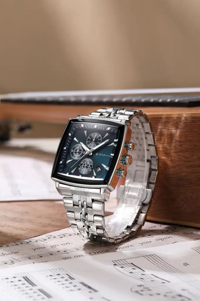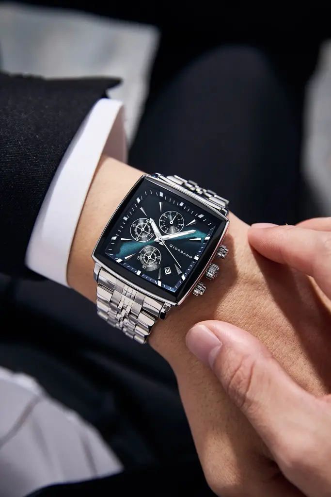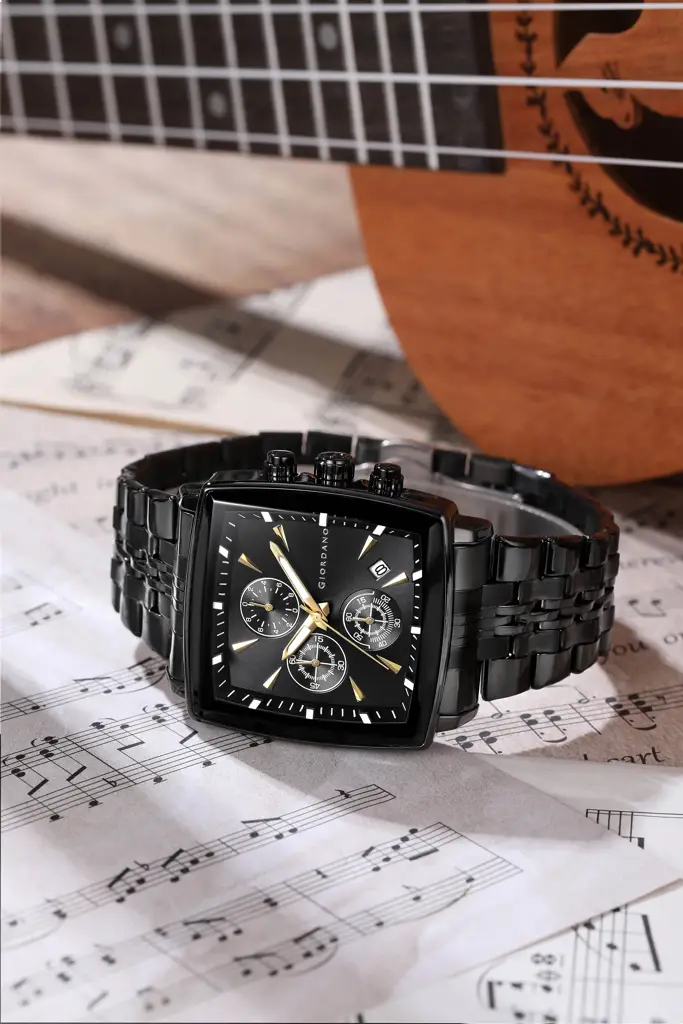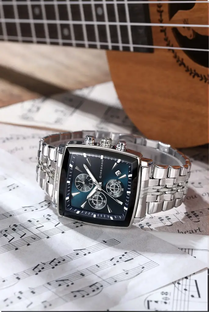 GIORDANOMulti Function Watch For Men With Square Dial, Stainless Steel Strap And Date Display