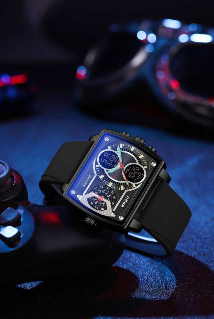 GIORDANOSquare Analog-Digital Watch For Men – Triple Time Zone Displa, Silicone Strap