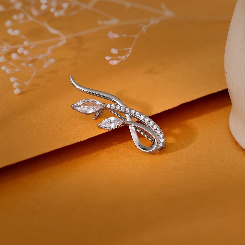 Giva 925 Silver Curvy Leaf Brooch For Him| Gifts For Men And Boys| With Certificate Of Authenticity And 925 Stamp | 6  : BH016