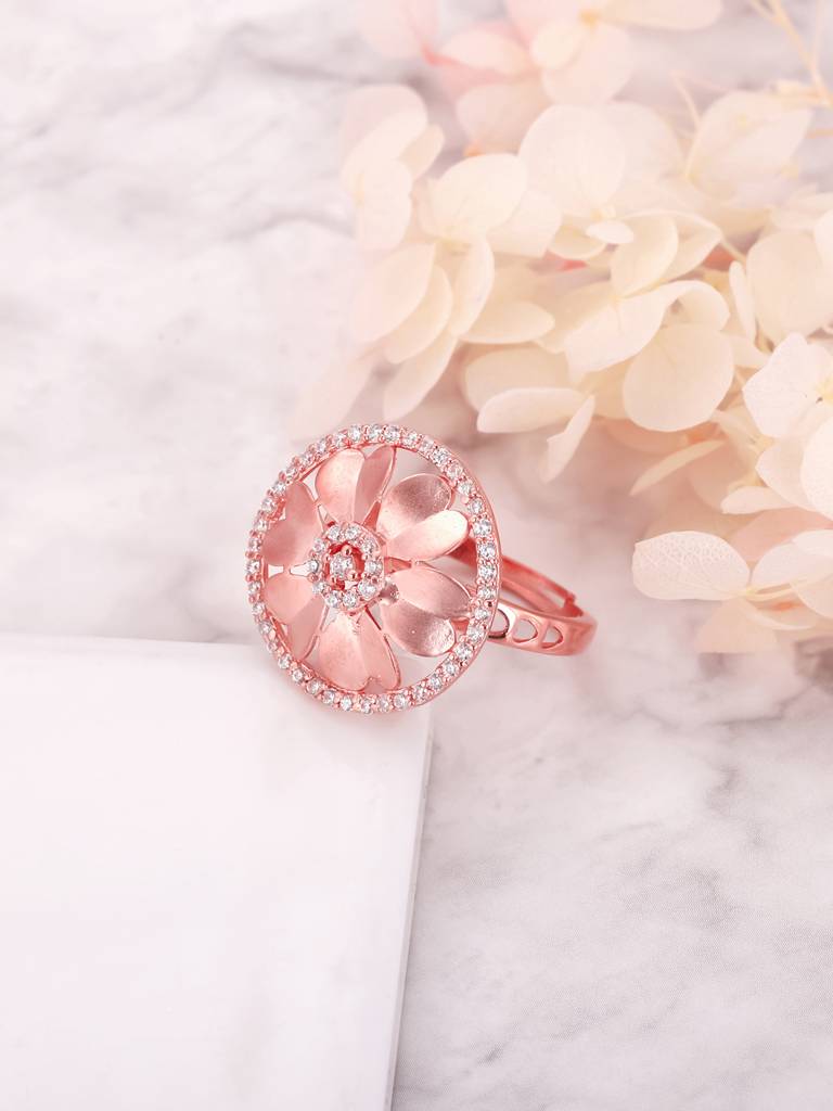 GIVA925 Sterling Silver Anushka Sharma Rose Gold Cocktail Ring (Adjustable)