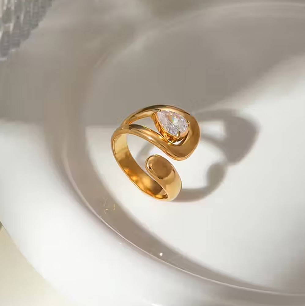 Gold Plated Adjustable Ring For Women And Girls, Pear-Cut Swirl Open Ring : AMAPEACUT