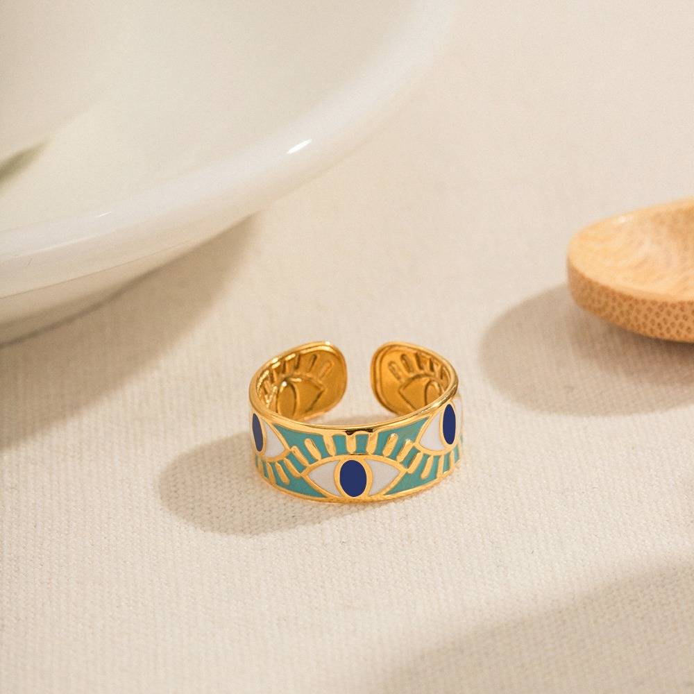 DimpleryGold Plated Daily Wear Evil Eye Resizable Ring (Adjustable)