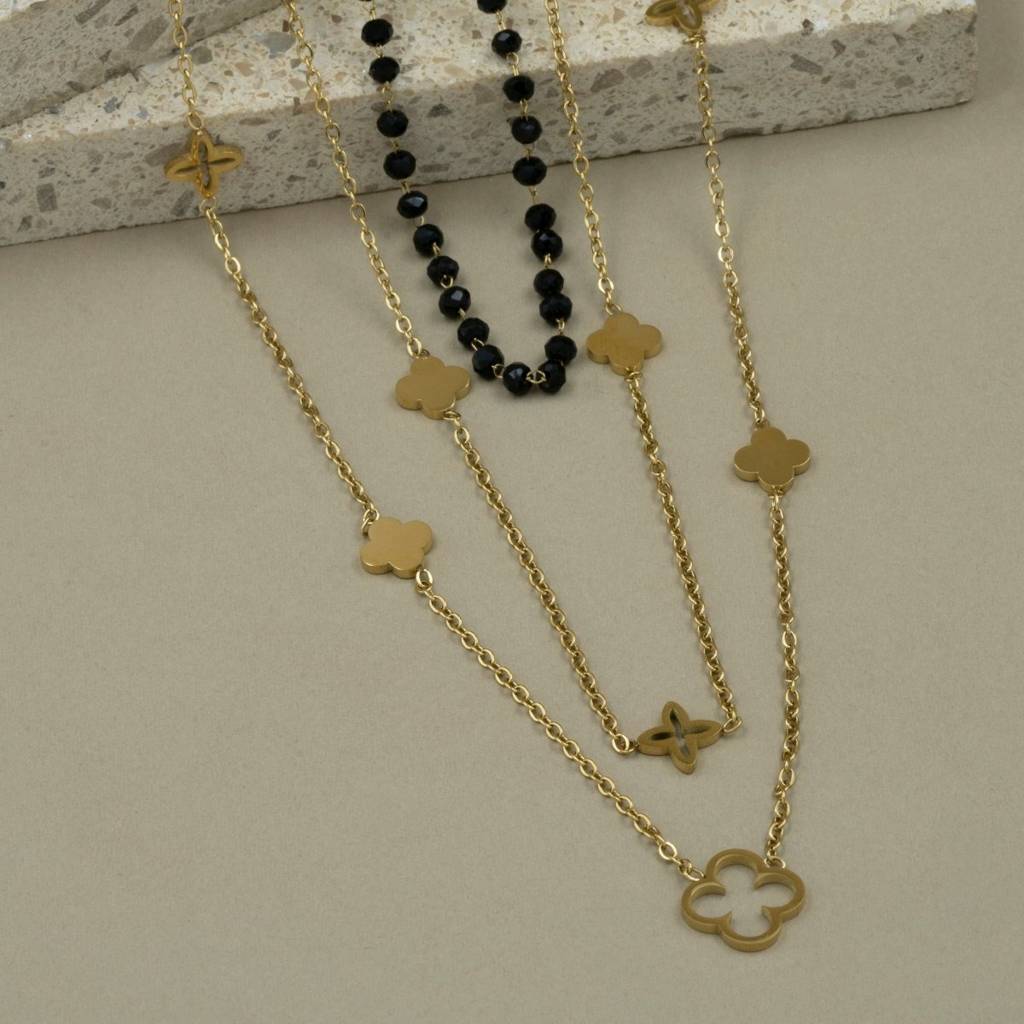 Gold Plated Elegant Clover And Bead Layered Necklace For Women & Girls : HSPS60MB0217