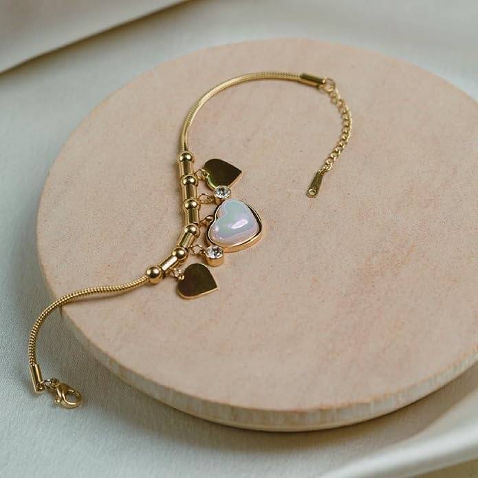 Gold-Plated Hearts Stainless Steel Charm Bracelet : HSbrbr0IDSM0018