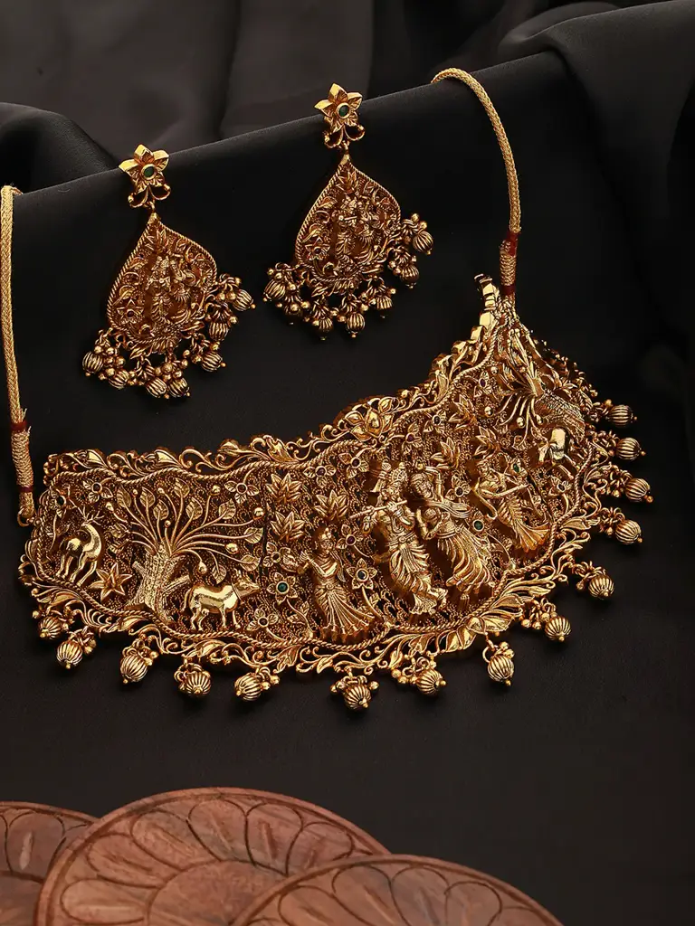 Saraf RS JewelleryGold Plated Krishna Leela Choker Temple Jewellery Set (One Size)