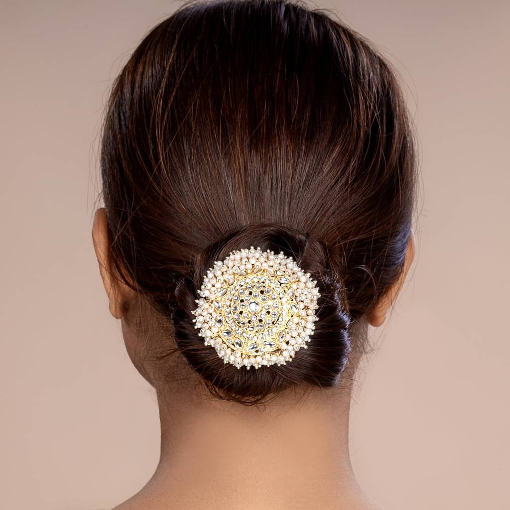 PeoraGold Plated Kundan & Beads Studded Round Hair Bun Pin Fashion Head Accessories For Women & Girls (1 Pc)