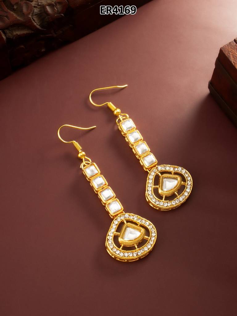Gold Plated Kundan Square Drop Earrings : ER4169