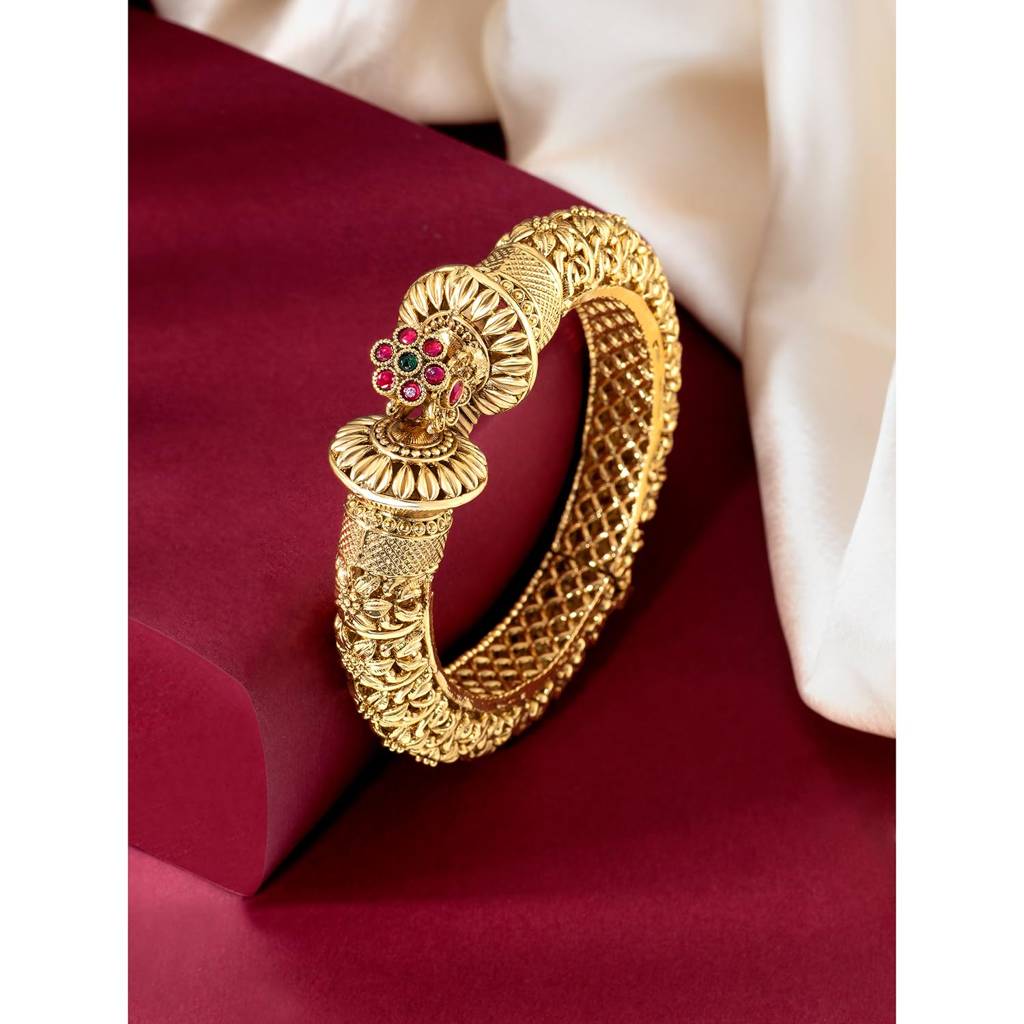 PeoraGold Plated Thick Single Piece Openable Kadaa Bangle Traditional Gokhru Ethnic Jewellery For Women