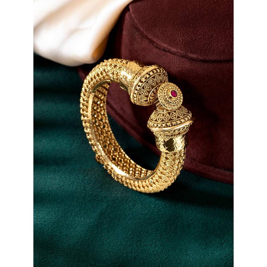 PeoraGold Plated Thick Single Piece Openable Kadaa Bangle Traditional Gokhru Jewellery For Women