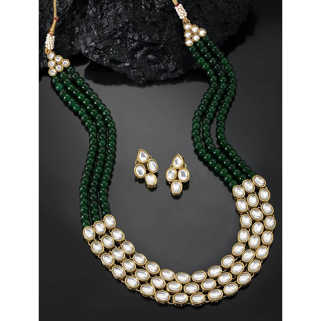 Gold Plated Traditional Kundan Long Necklace Jewellery Set With Earring Gift For Women Girls-Pf26N1171 : PF26N1171G