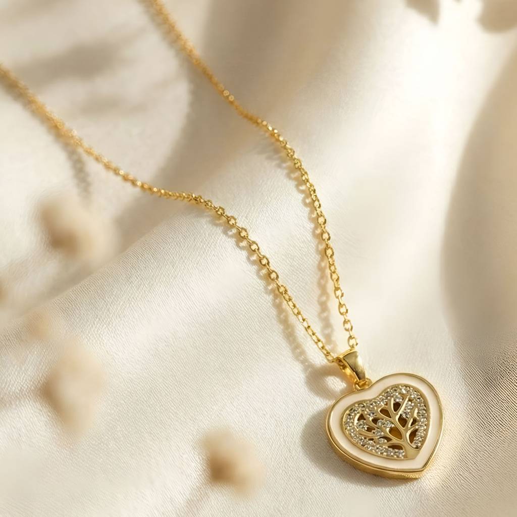 ARTKLIMGold-Plated Tree Of Life Heart Anti-Tarnish Pendant Necklace (11 Inches)