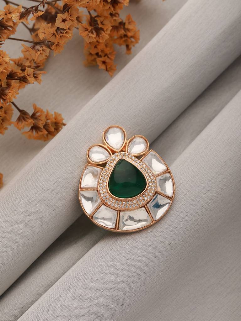 Saraf RS JewelleryGold Polish Green Polki Kundan Designer Adjustable Engagement Finger Ring (Adjustable)