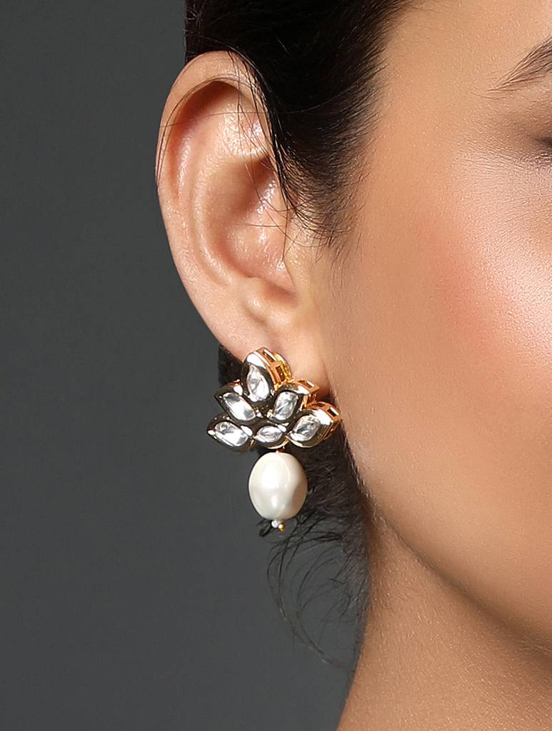 Hrisha JewelsGold Polished Pearl Kundan Polki Earrings