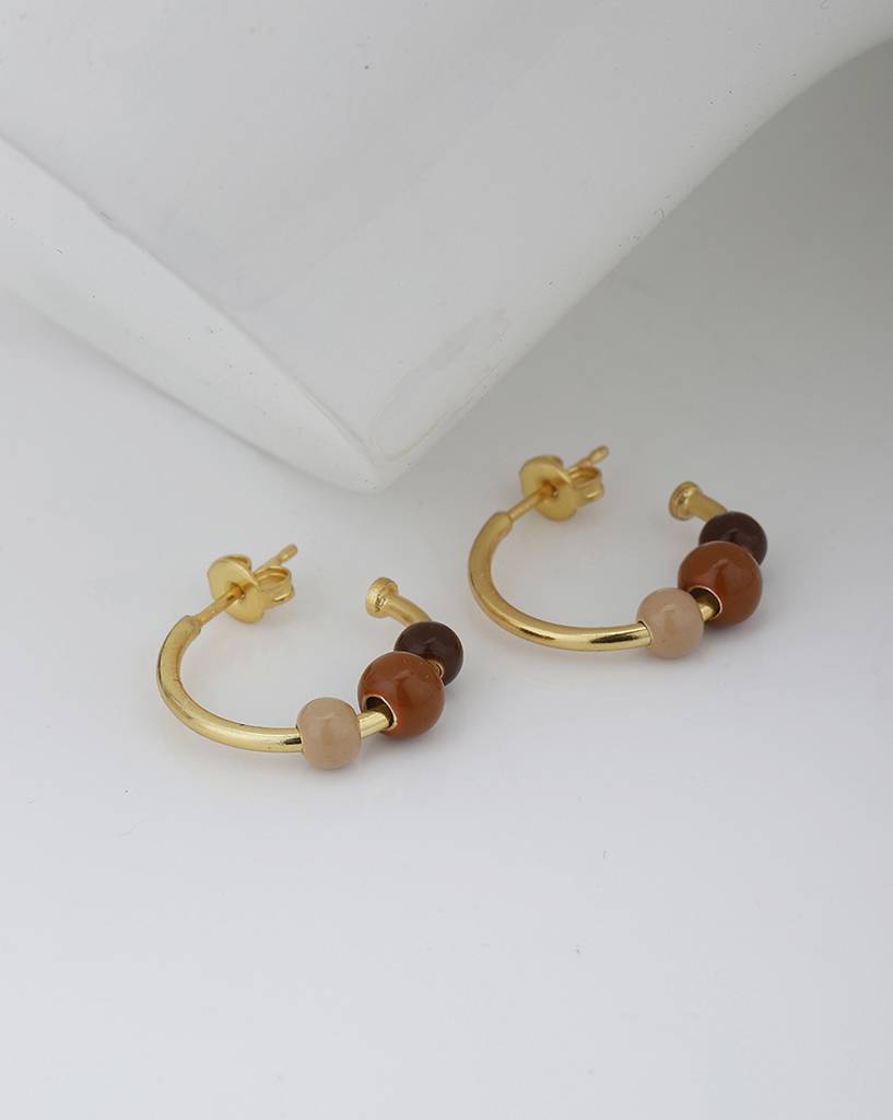 Gold-Toned & Brown Contemporary Half Hoop Earrings : FJE4032