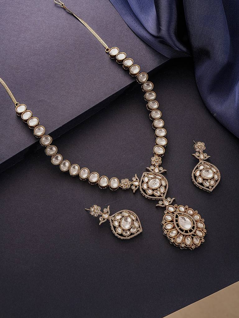 Saraf RS JewelleryGold Toned Kundan Uncut Polki Jadau Bridal Statement Jewellery Set (Size 10)
