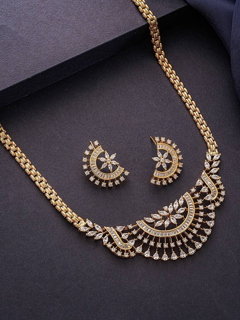 Saraf RS JewelleryGold Toned White Ad Zircon Studded Long Haram Chain Necklace Jewellery Set (Size 10)