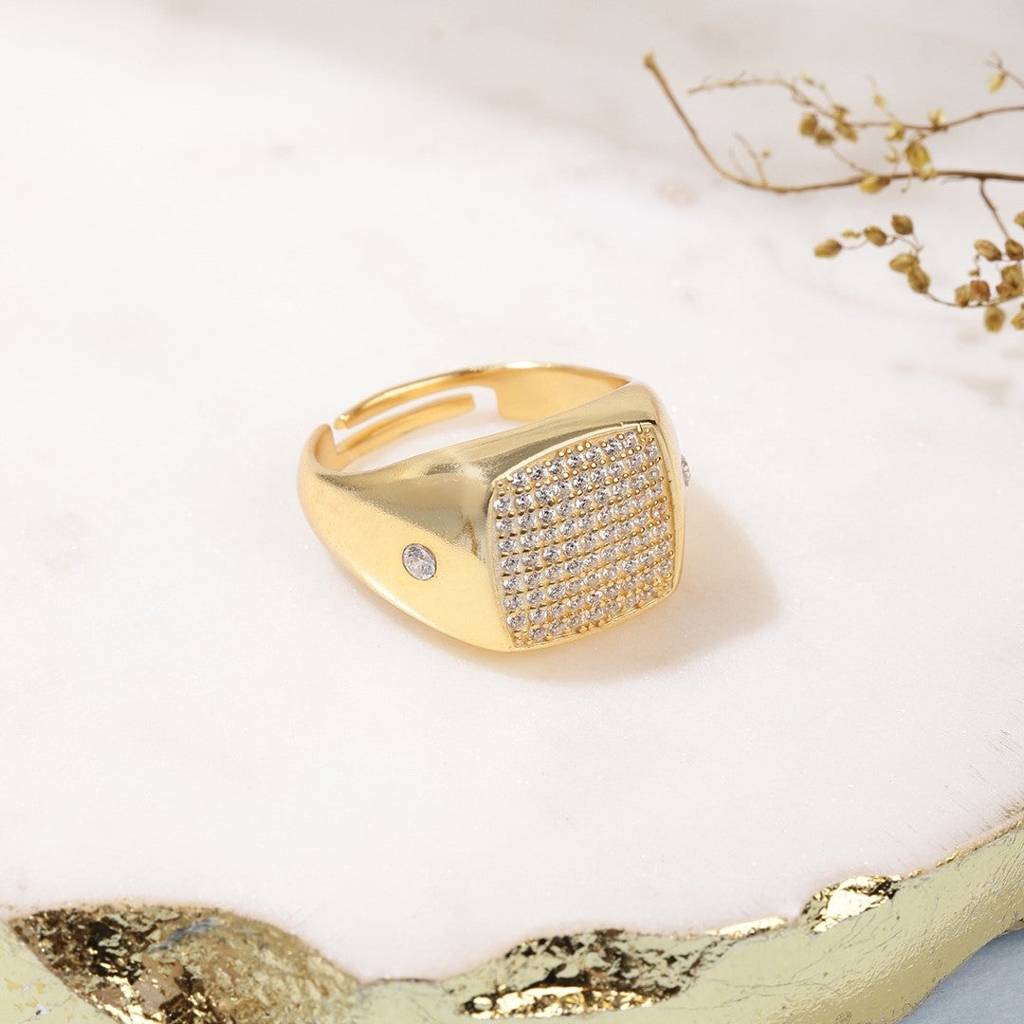Ornate Solitaire Gold Plated Sterling Silver Adjustable Ring