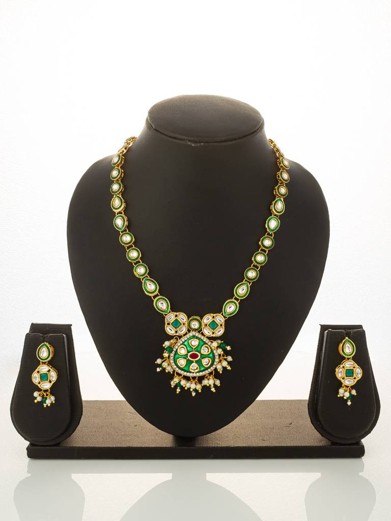 Green Enamel Meenakari And Kundan Gold Plated Necklace Set : NK4893