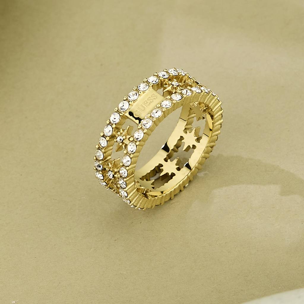 GUESS JewelleryGuess In The Sky Gold-Plated Stainless Steel Ring For Women (Size 13)