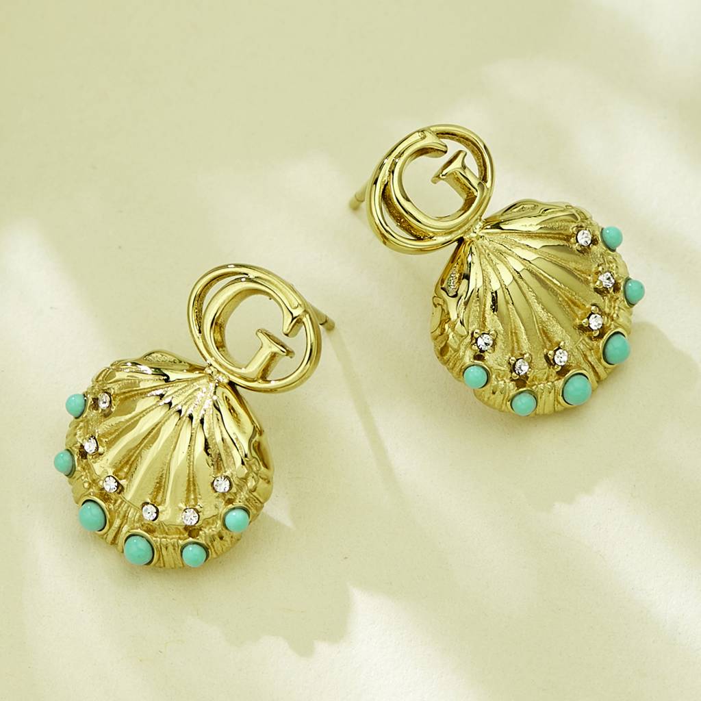 Guess Seashell Gold-Plated Blue Stainless Steel Stud Earrings For Women : UBE05128YG