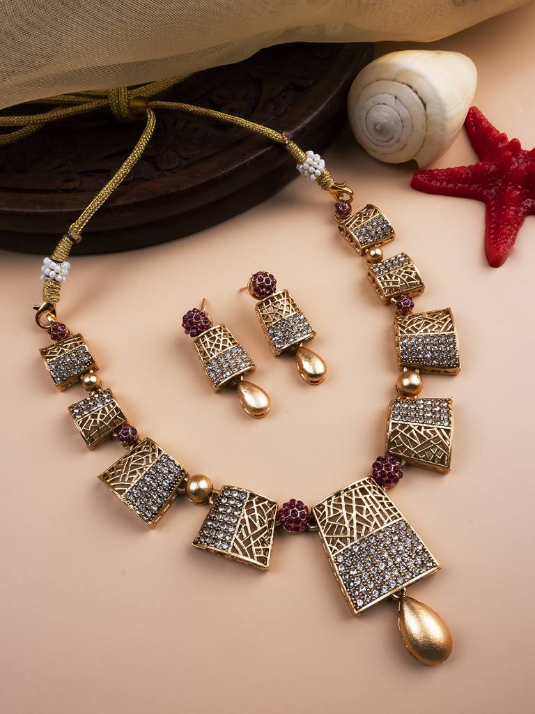 StileAddaHandcrafted Ad Stone Square Necklace Set (One Size)