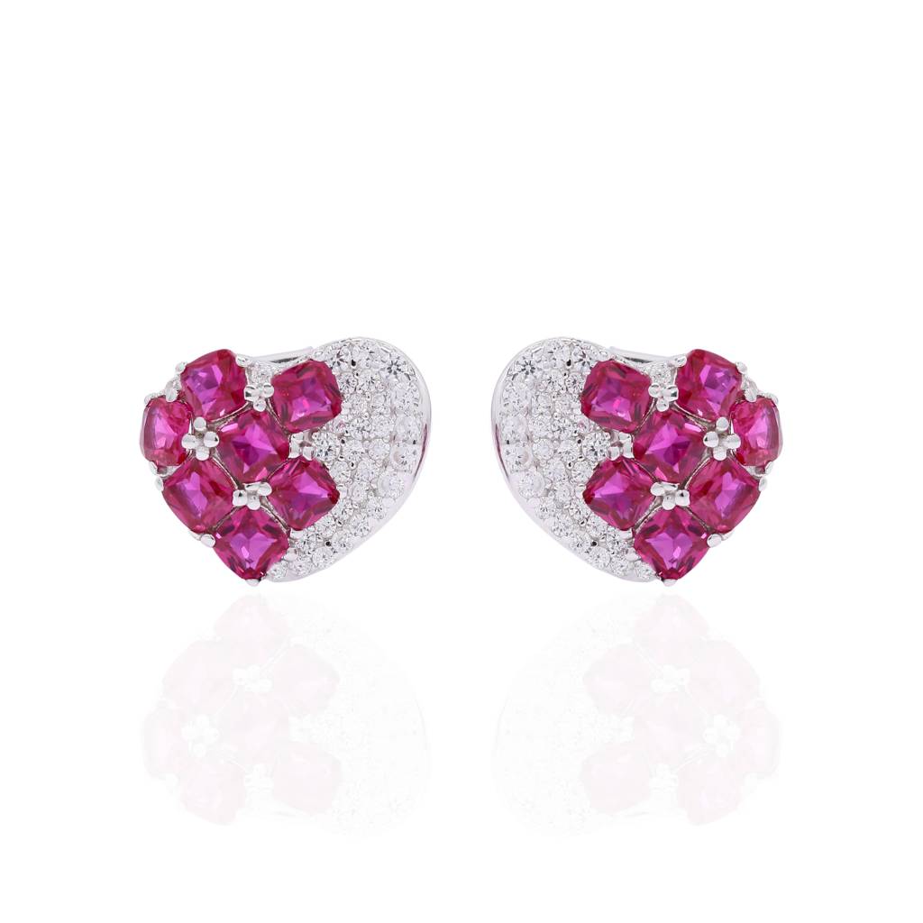 Italian Pave Setting Curvy Heart Bella Stud With Sugar Loaf Rubies On Pure 925 Silver : TE2365