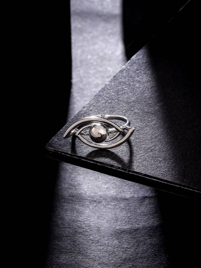 Kicky And Perky 925 Sterling Silver Evil Eye Adjustable Ring For Women : SILGENR009_S