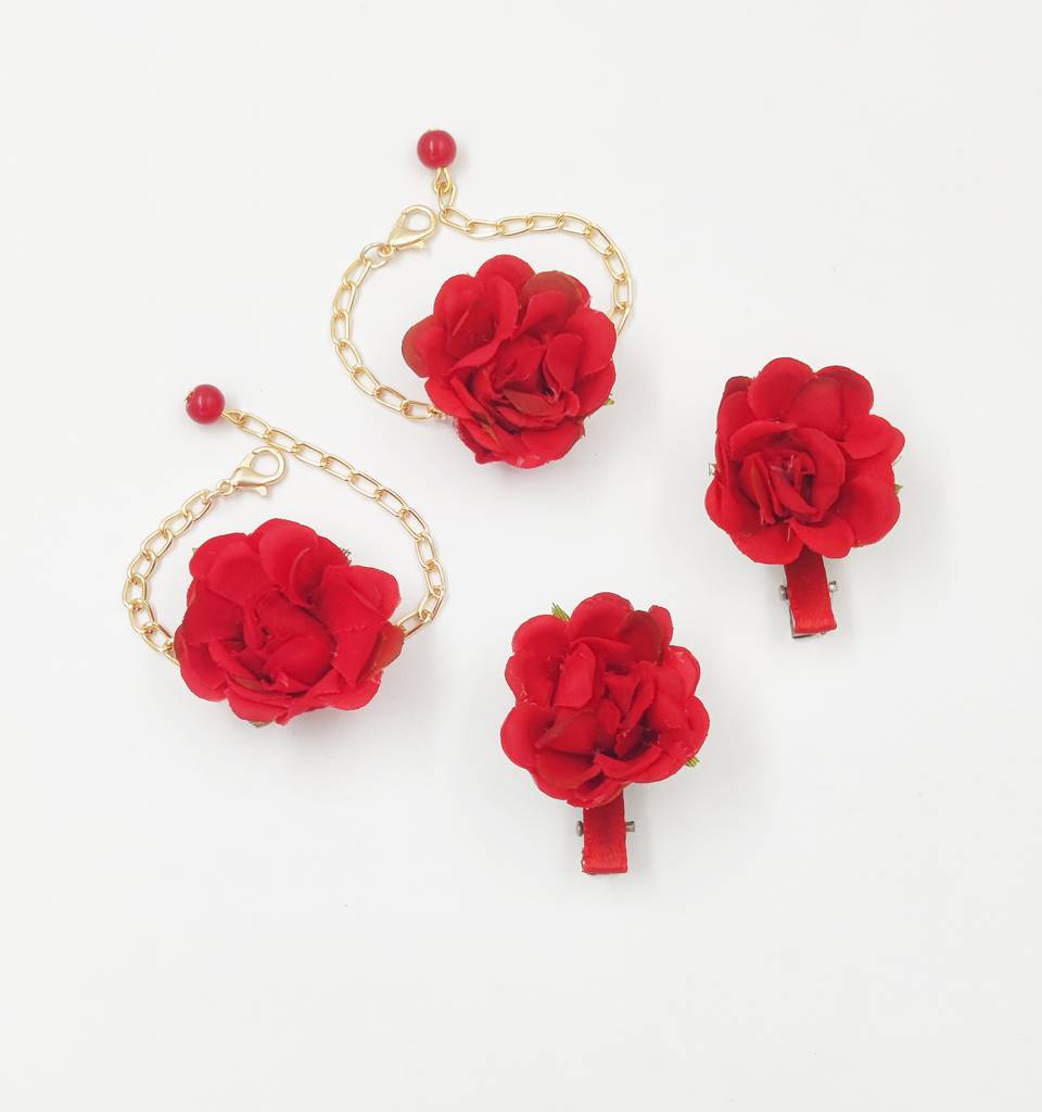 Kids Floral Baby Clips & 2 Bracelets Set- Red : CM017