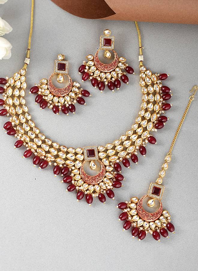 Kundan Elegance Red Stones Jewellery Set : 8905124477177