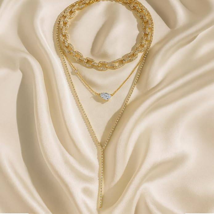 AMALFALina Multi-Layered Necklace Stack For Women & Girls