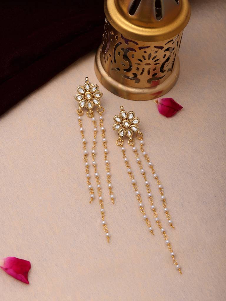 Long Kundan & Pearl Dangler Earrings : RRAUG25-34