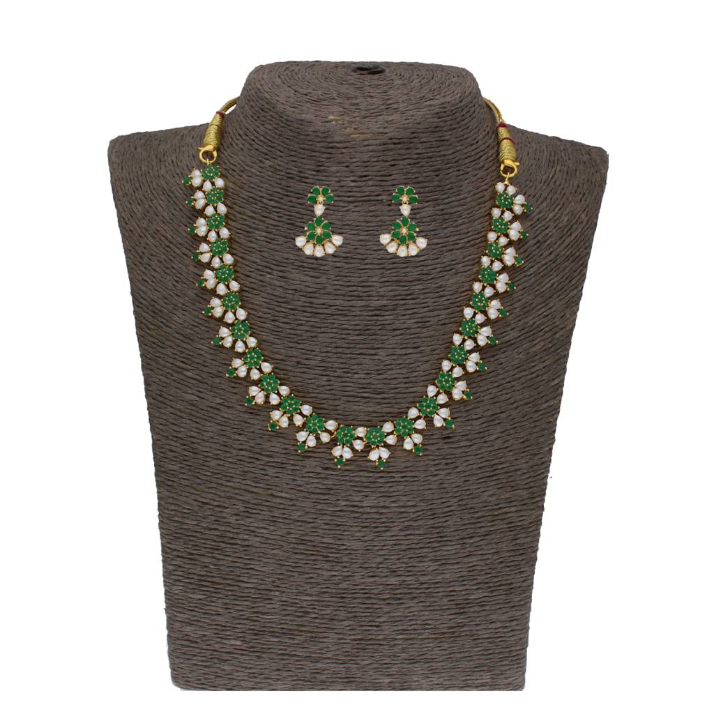 JAGDAMBA PEARLSLopa 1 Line Oval Necklace Set (Free Size)