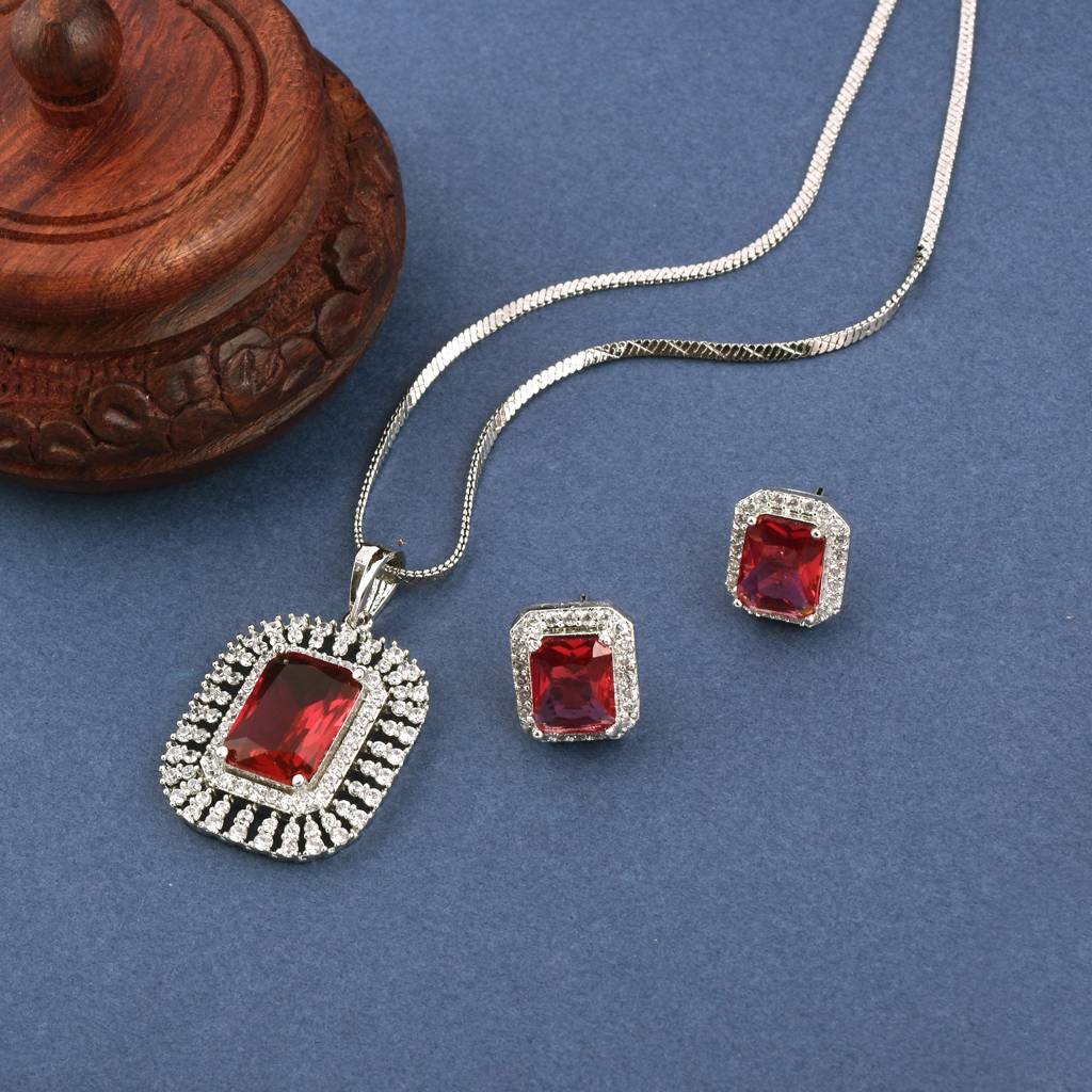 Majestic Garnet Cascade Pendant Set With Chain And Earrings : PJPENWHGCZ57