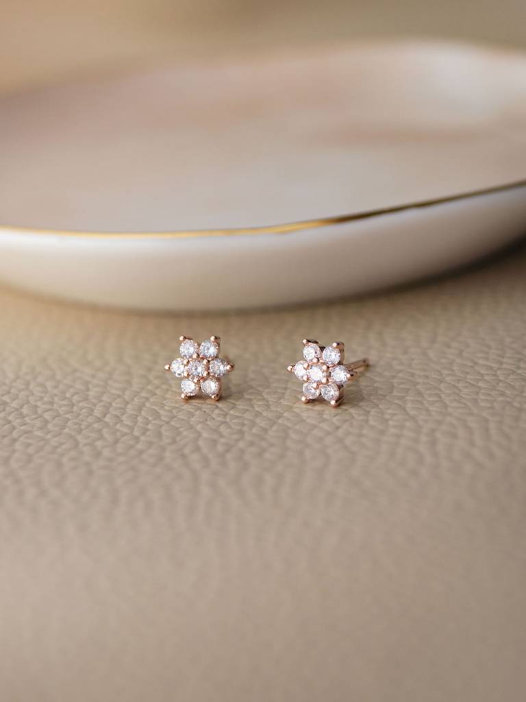 Mannash Shinning Flower Nakshatra Rose Gold Plated Sterling Silver Stud Earrings : MZRES503D1172