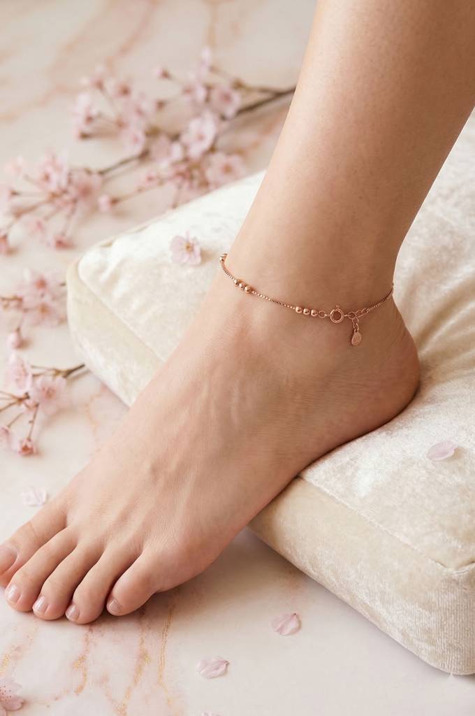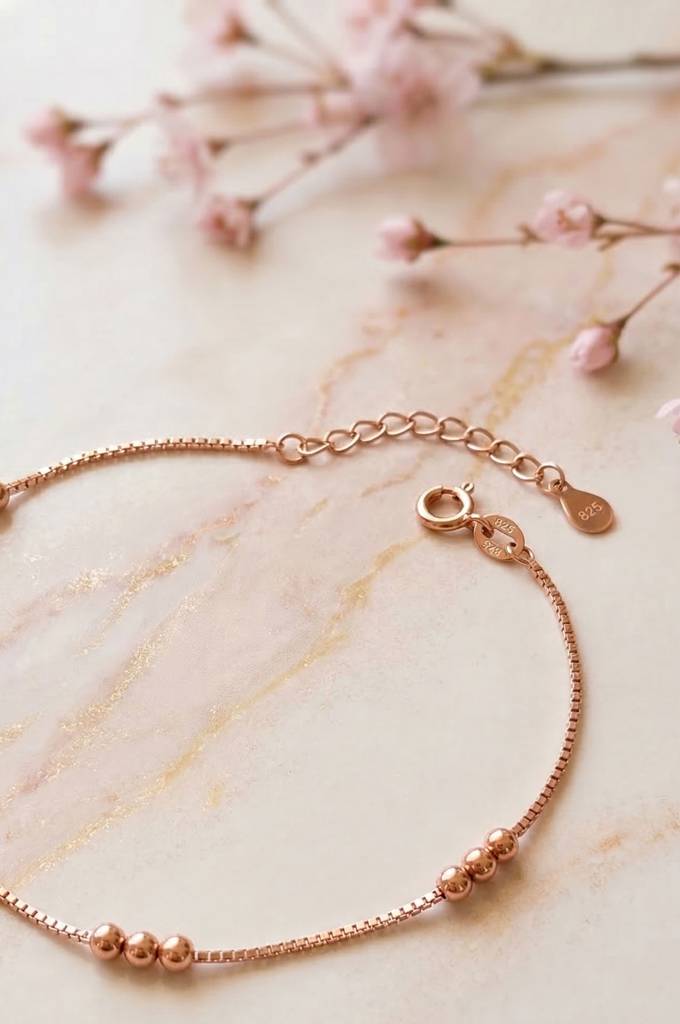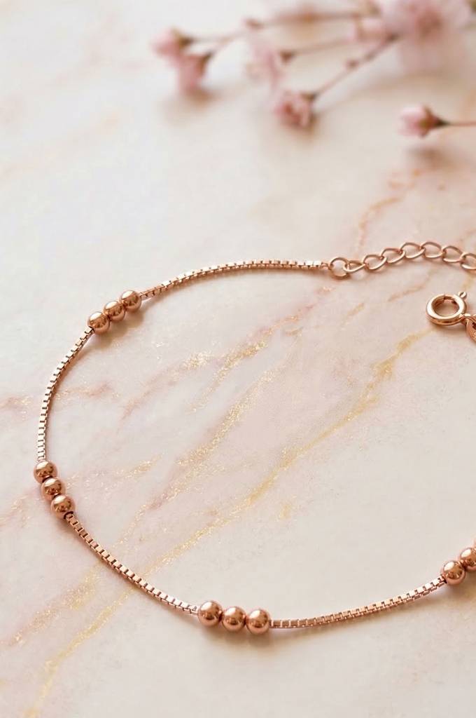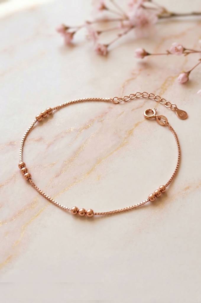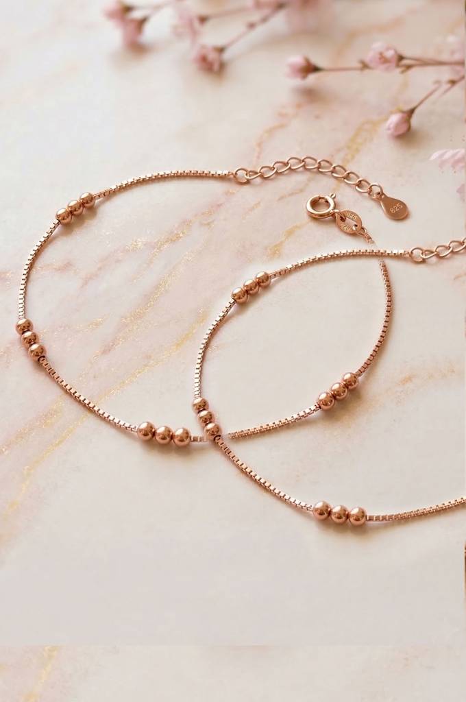 MannashStation Beads Chain Rose Gold Plated Sterling Silver Anklet