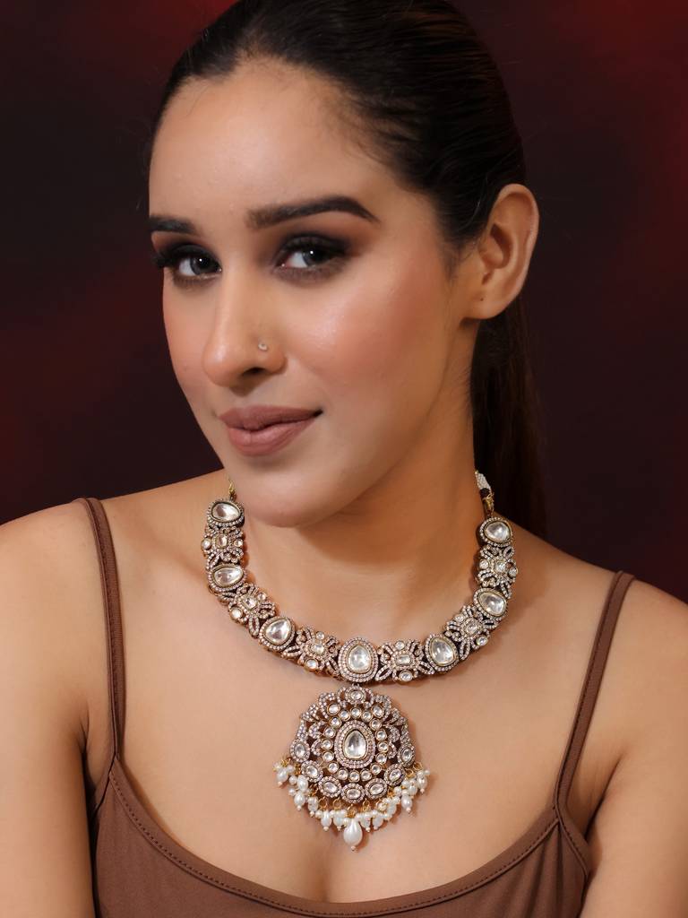 Kraft SmithsMatt Gold And Pearl Jadau Necklace Set