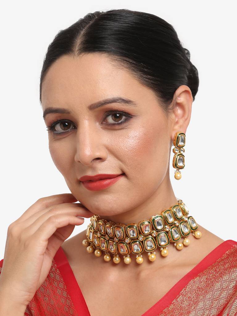 Ruby RaangMeenakari Kundan Choker With Earrings
