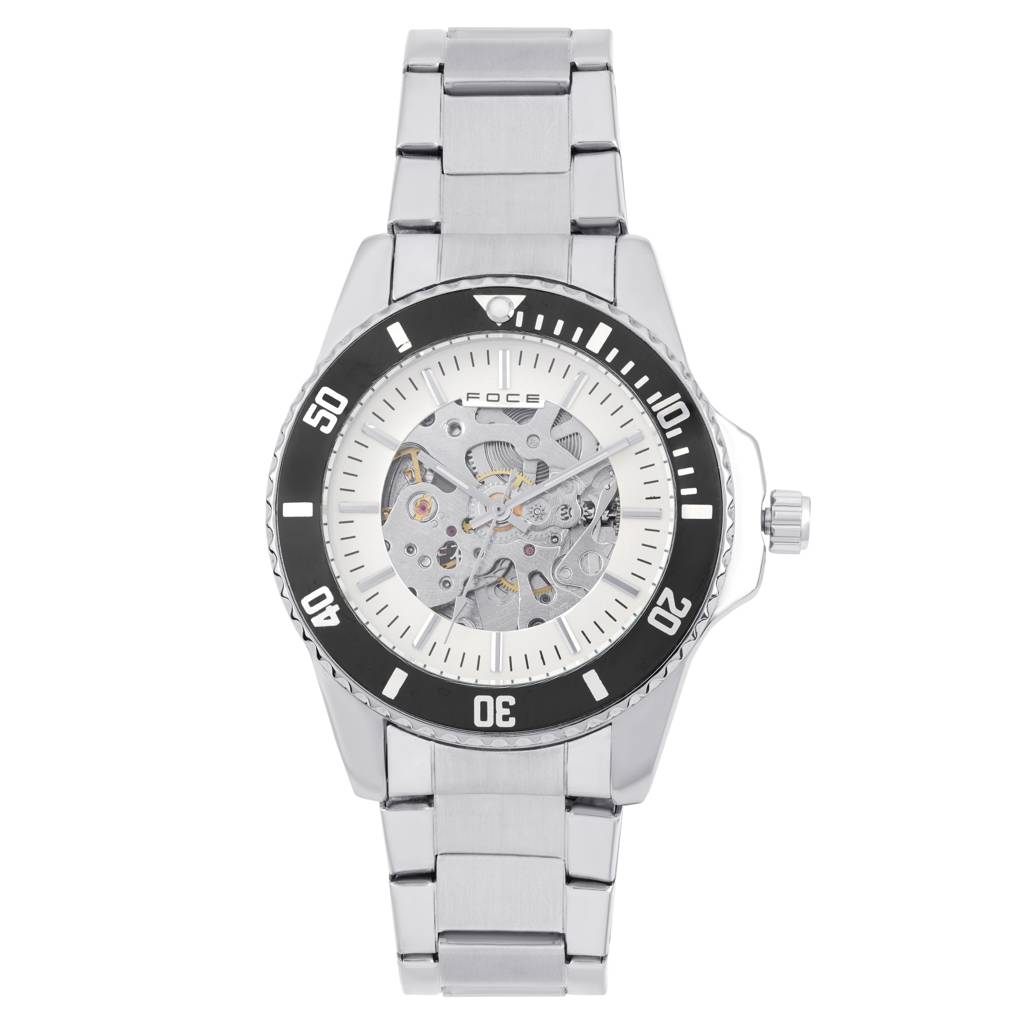 FOCEMen’S Automatic Stainless Steel Round Watch – Silver Case & Strap, White Skeleton Dial, Premium Luxury Analog Wristwatch For Men, Mechanical Timepiece