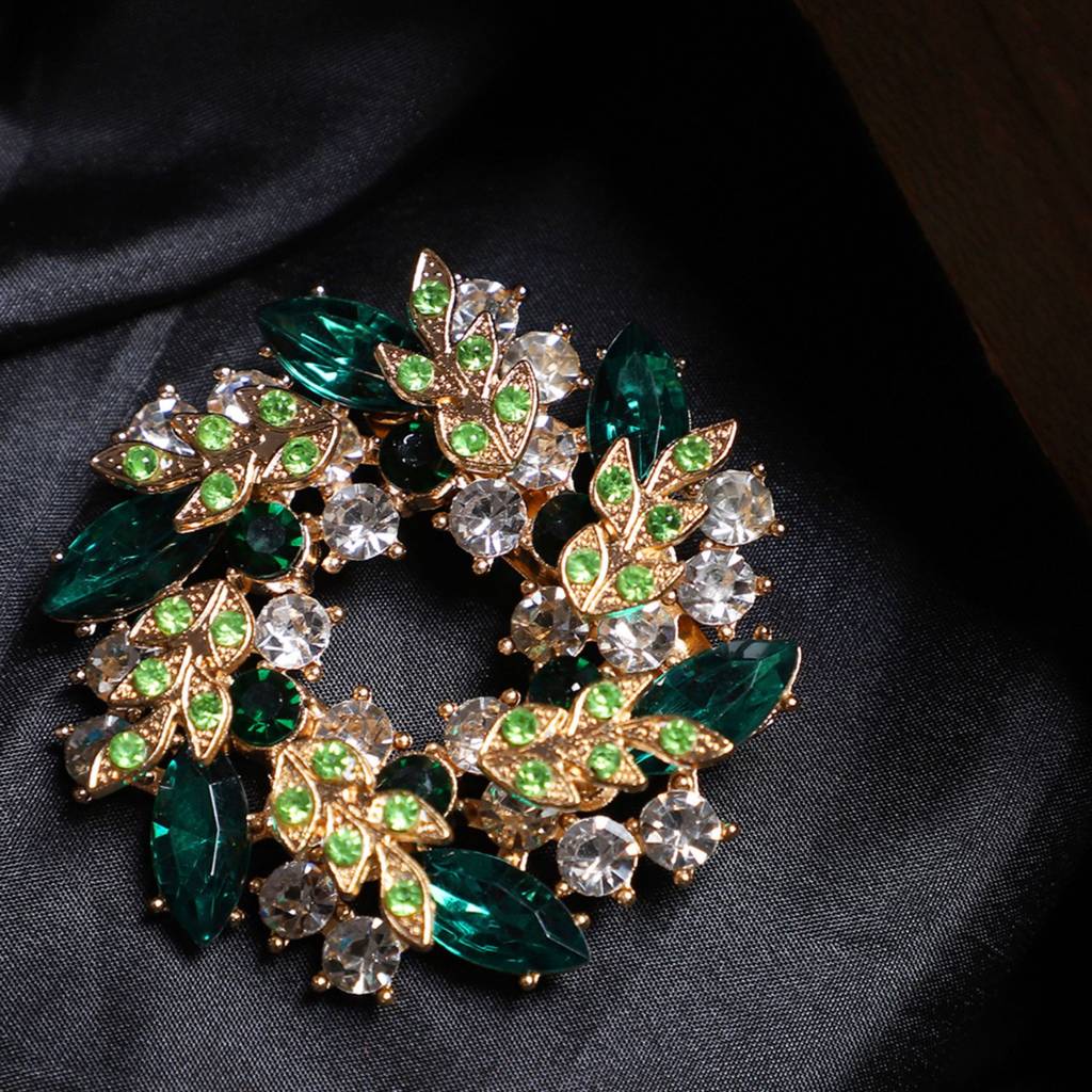 AQUASTREETMens Floral Design Green Crystal Brooch Or Collar Pin