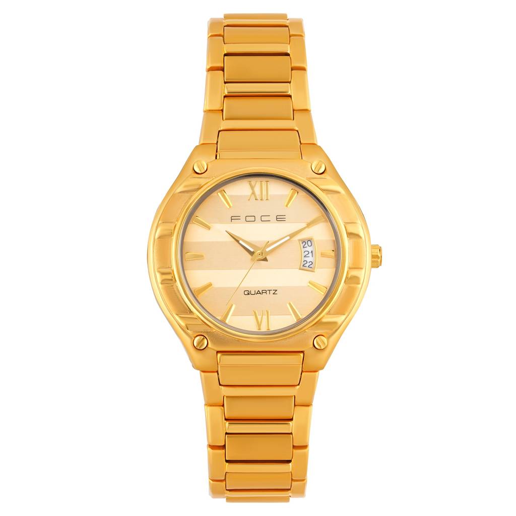 FOCEMen'S Gold Analog Quartz Watch With Date | Roman Dial | Champagne Dial, Stainless Steel Strap | Luxury Formal Dress Watch For Men | Water Resistant | Model Fc119-Cham