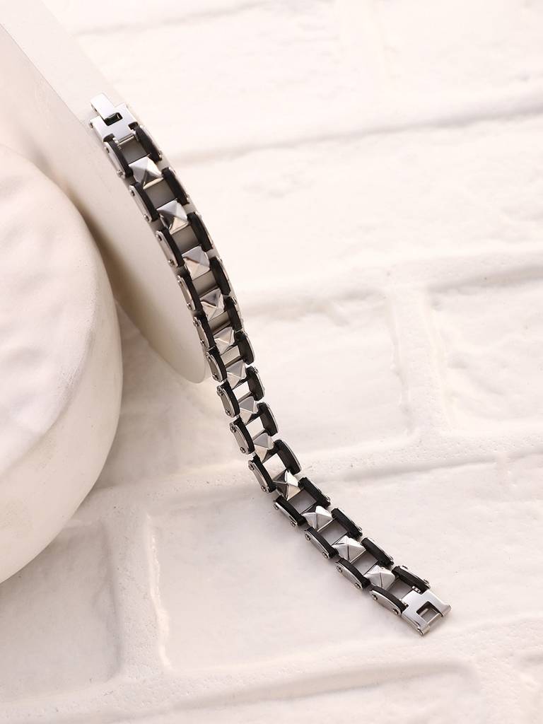 Men'S The Studded Chain Bracelet - Onyx Black & Metallic Silver : FABR1324